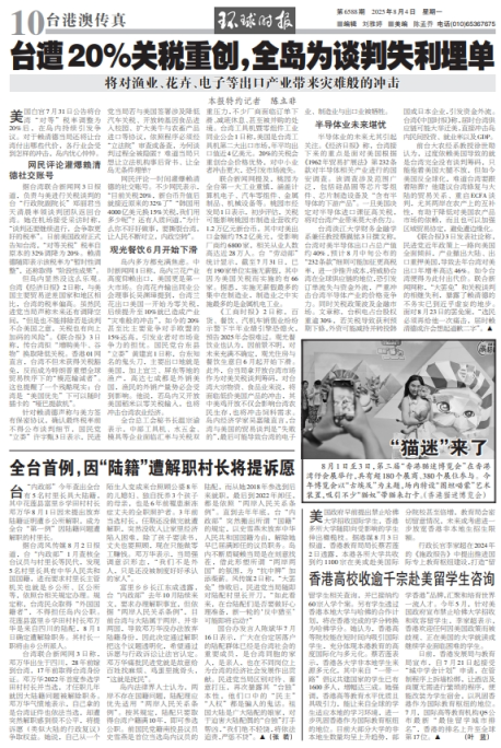 美国白宫7月31日公告将台湾“对等”税率调整为20%后泸深策略,在岛内持续引发争议。对于赖清德当局还将让台湾付出哪些代价,各行业会受到怎样的冲击,岛内忧心忡忡。
